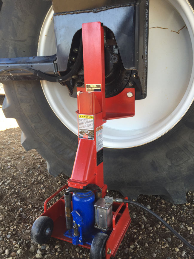 Because the wheel suspension bracket on these sprayers are not always 90 degrees to the ground the adapter can swivel on the stand but the vertical pin keeps the adapter secure to the stand
